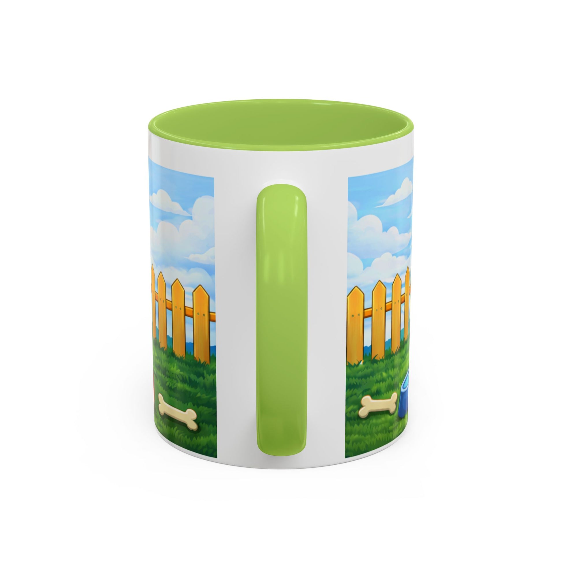 Warm mornings with wagging tails. This ceramic coffee mug carries a cheerful scene: a fluffy white dog lounging at the doorway of a bright red doghouse, a sunlit yard with a picket fence, and playful toys scattered on the grass. The colored interior and handle add a pop of contrast that makes the artwork sing. Sip slowly and feel the little moment of joy — like a friendly nudge from a pet waiting for you to start the day. The glossy finish makes the colors vivid, and the sturdy C-shaped handle feels comfortable whether you choose the 11oz or 15oz size.