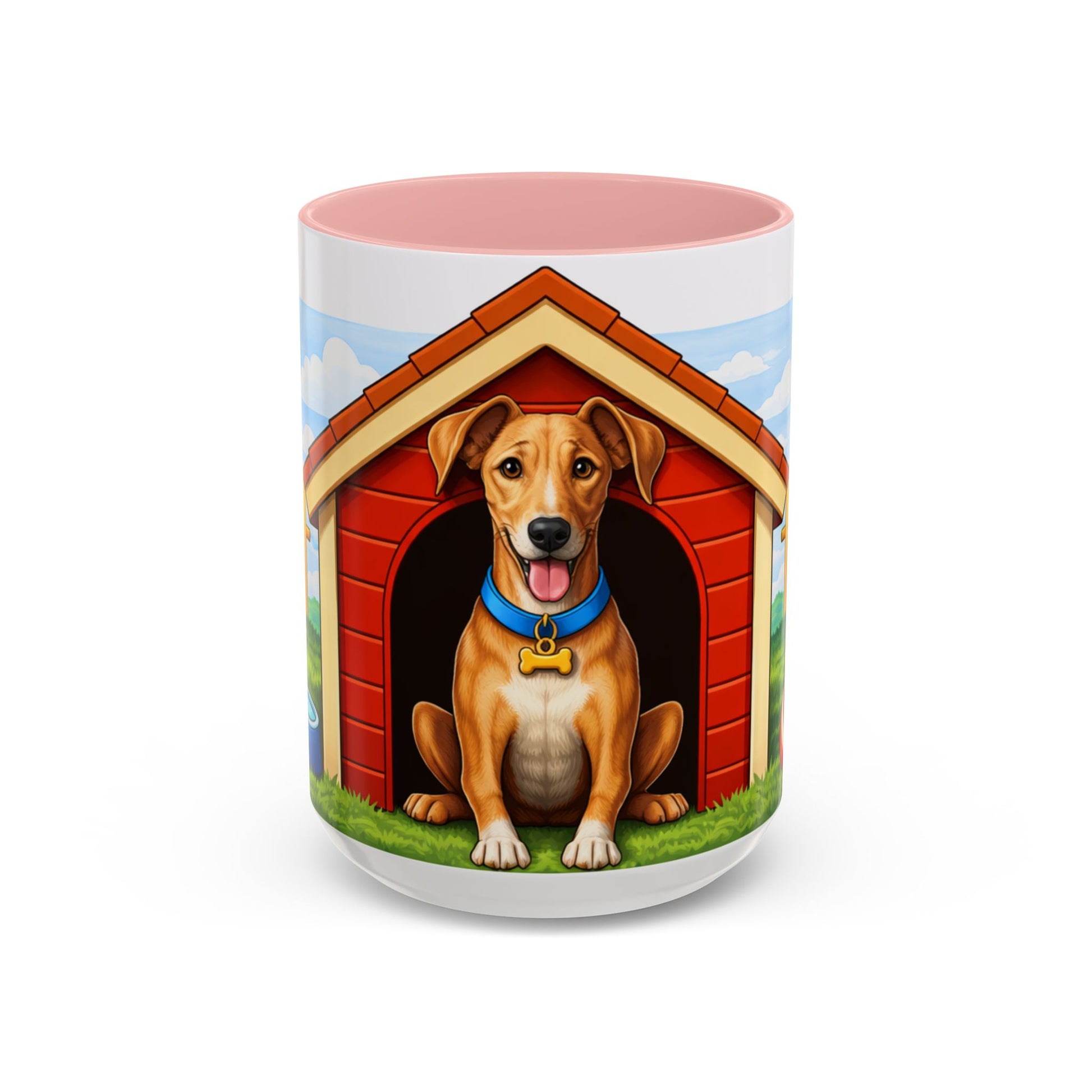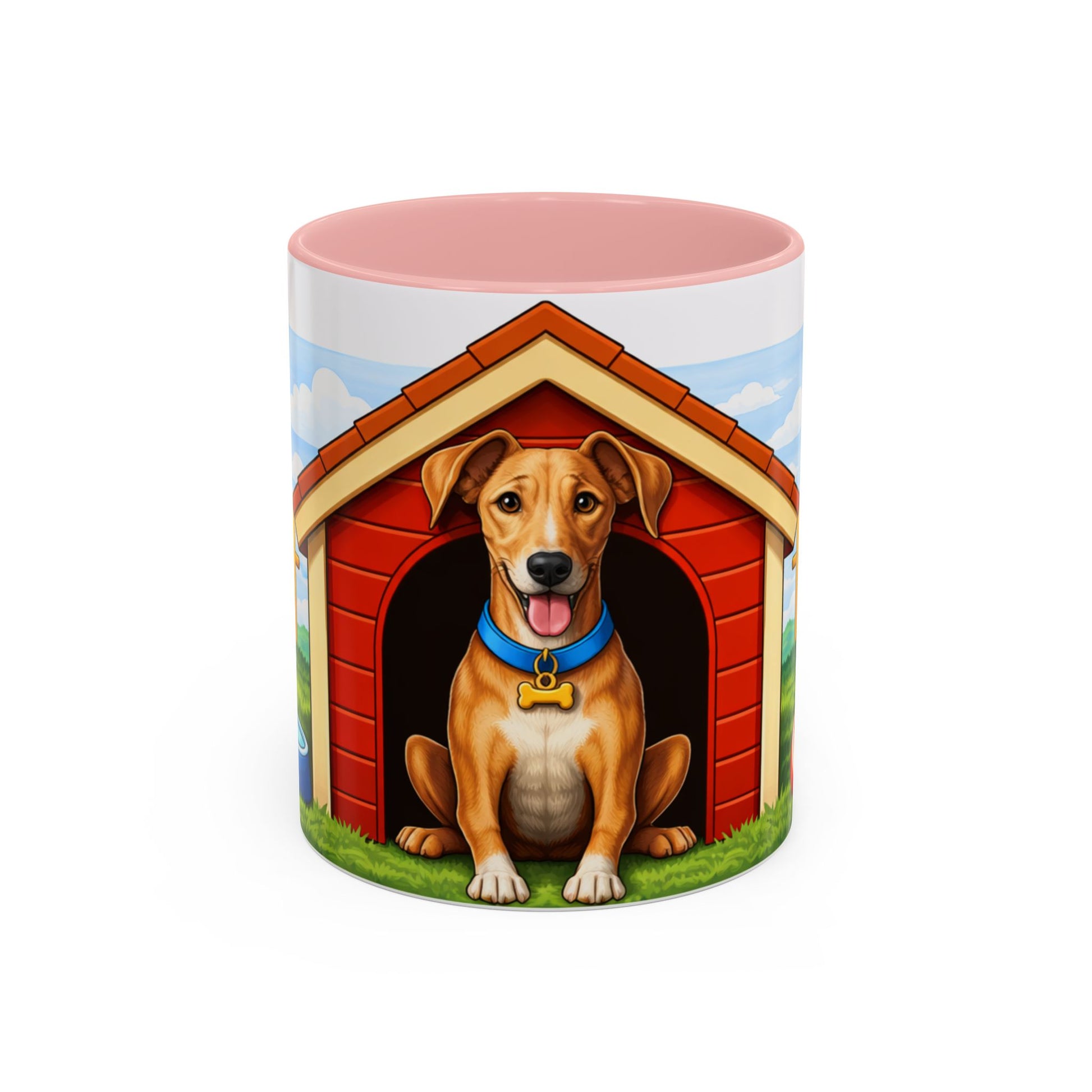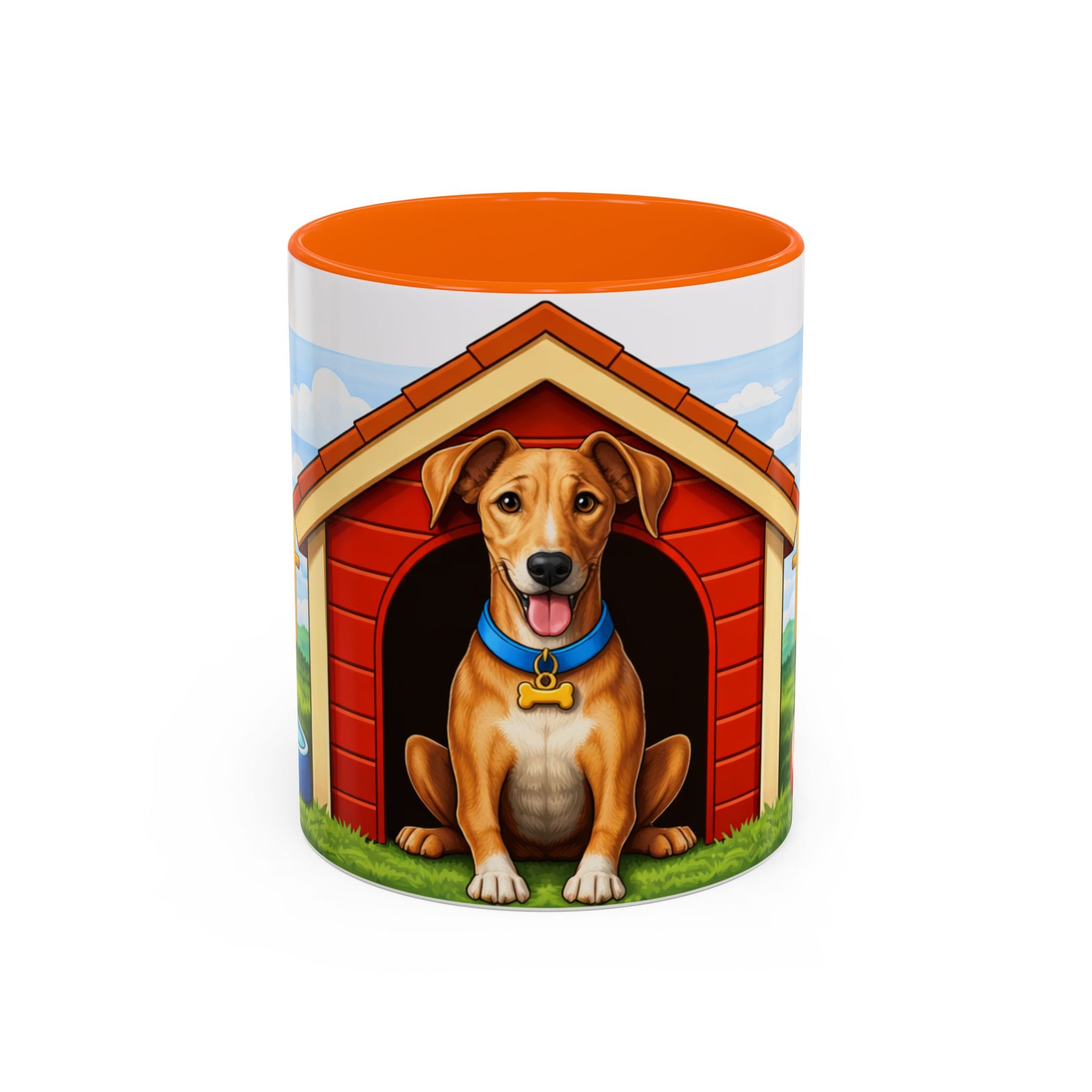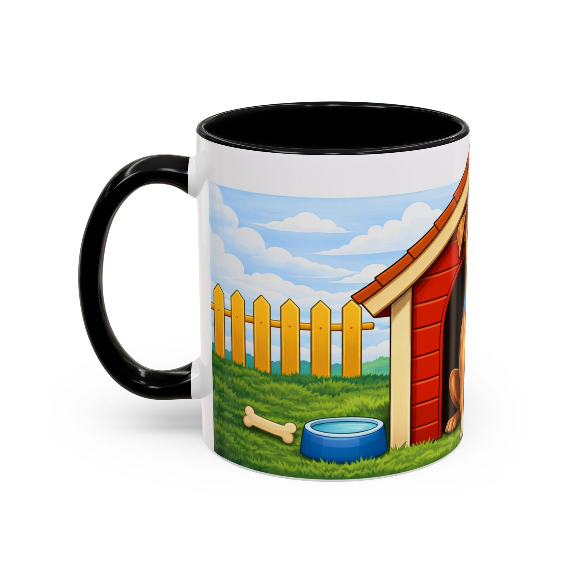 Warm mornings start here. This glossy ceramic mug brings a little backyard joy to every sip: a friendly dog perched in its red doghouse, a sunlit yard, and playful details like a ball and bone circling the scene. The colored interior and handle create a cheerful contrast that lifts the design and your mood. It’s sturdy enough for daily use — microwave and dishwasher safe — and bright enough to keep that wagging-tail feeling with you through coffee, tea, or cocoa. Keep one on your desk for a gentle reminder of home or give it to someone who reads every moment with their pup at their side.