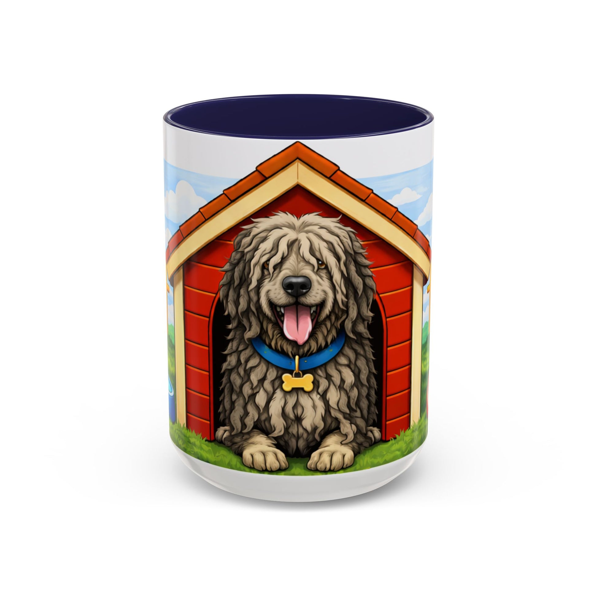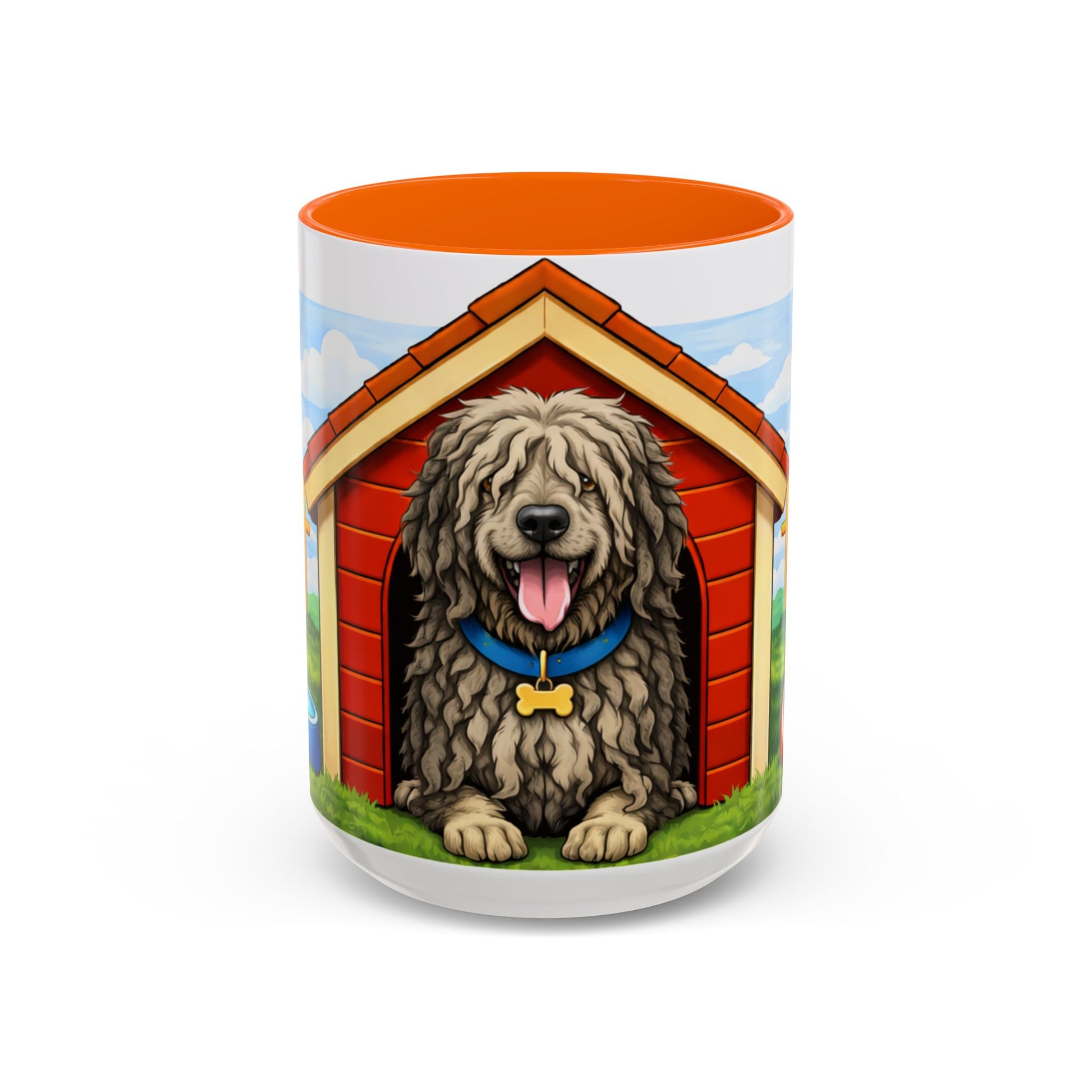Bergamasco — Cute Fluffy Red Doghouse Accent Mug (11oz/15oz)