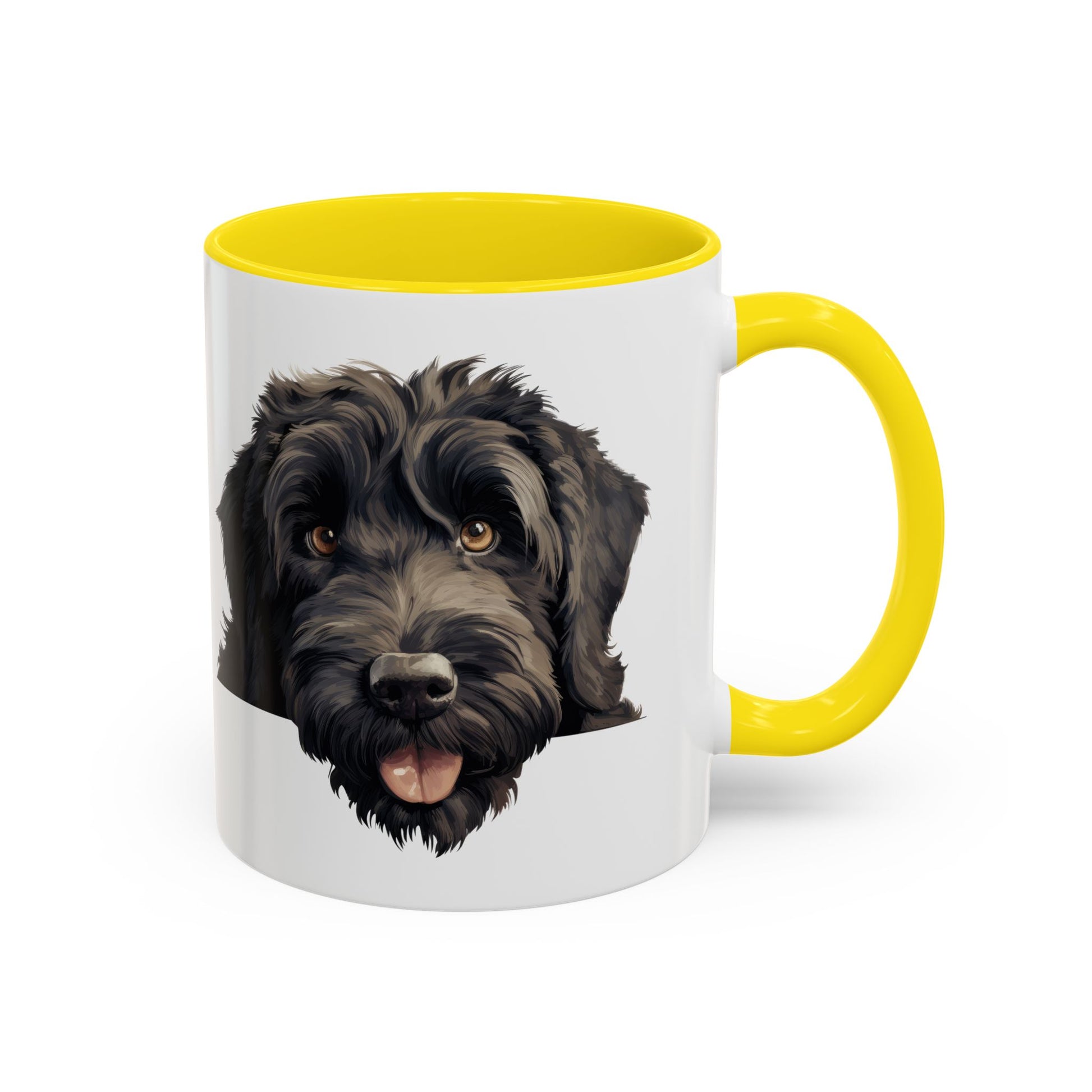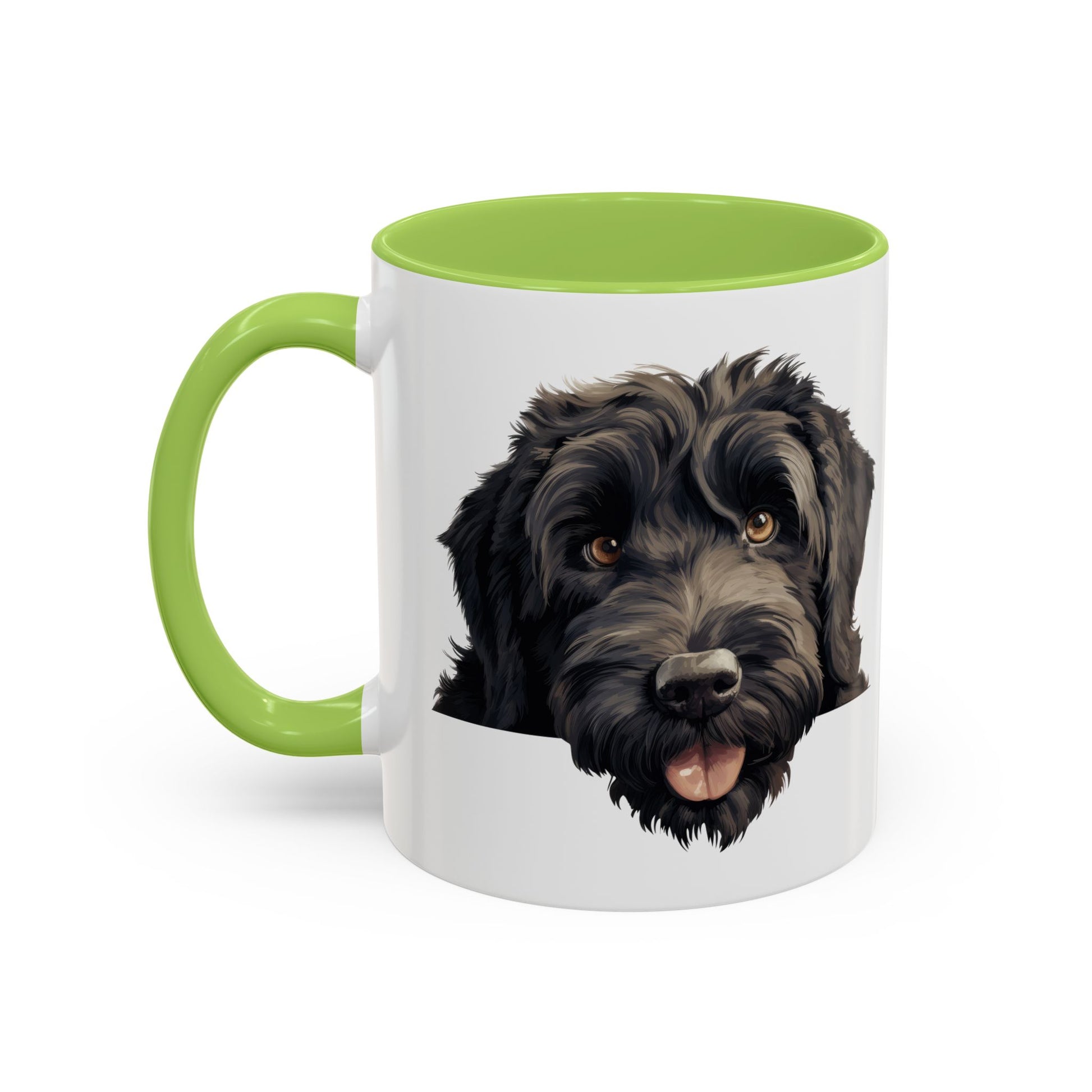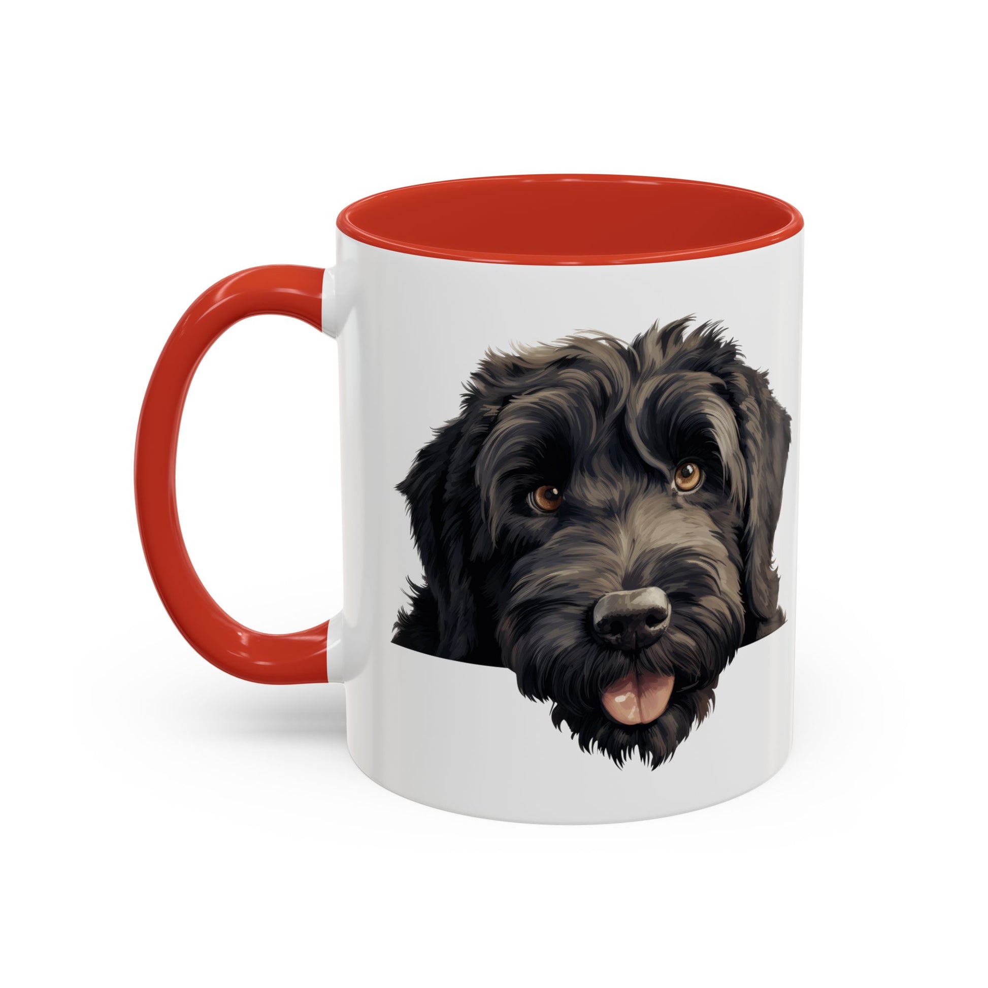 A warm, everyday mug that brings a friendly face to your morning ritual. The glossy white ceramic exterior showcases a beautifully detailed portrait of a happy black doodle, while the colored interior and C-shaped handle add a pop of contrast that feels both playful and polished. Lightweight yet sturdy, this mug warms up in the microwave and cleans easily in the dishwasher, making it a reliable companion for rushed mornings, slow weekends, and everything in between. Hold it close during chilly mornings, set it on your desk while you work, or tuck it into a cozy corner on the kitchen shelf where its cheerful expression brightens the room.