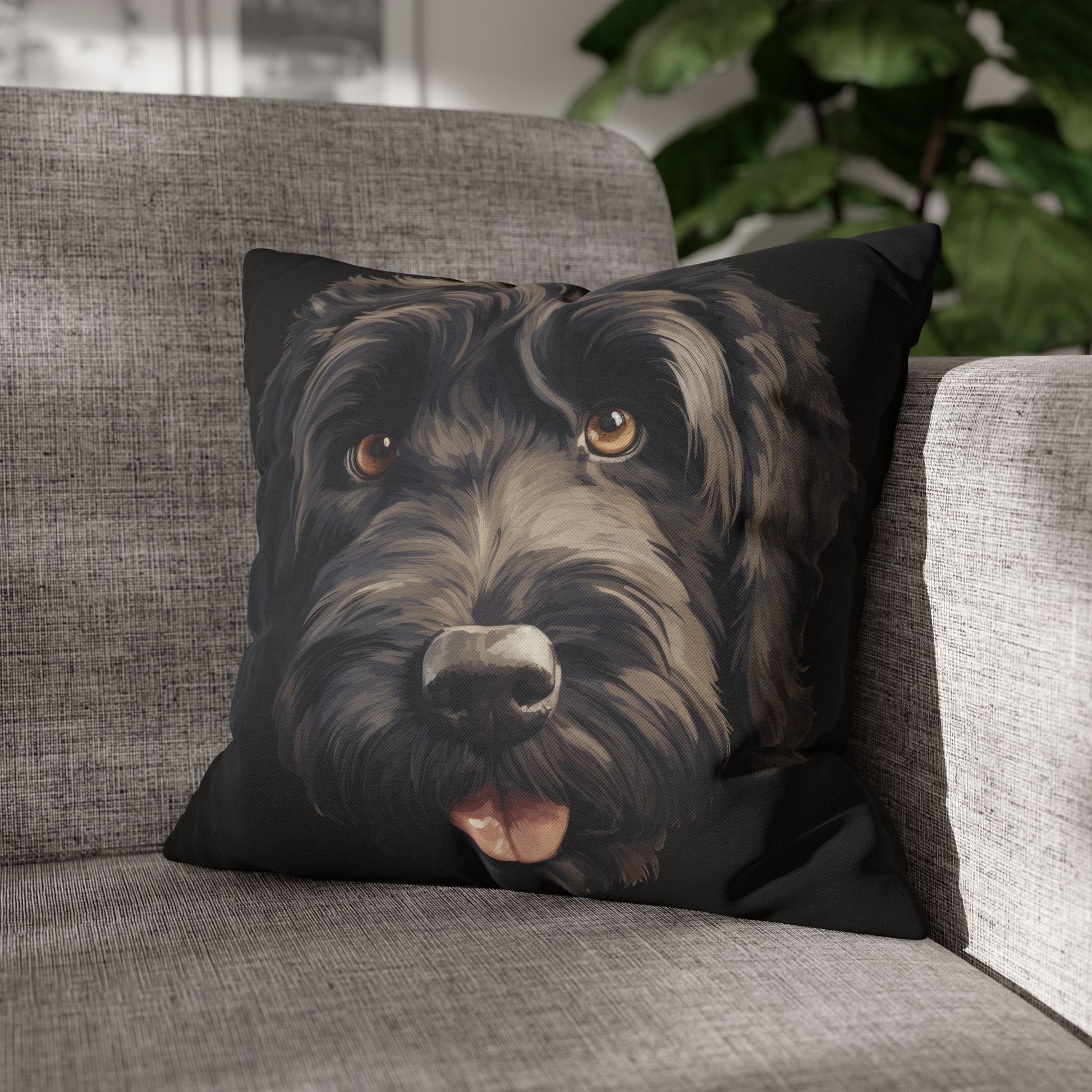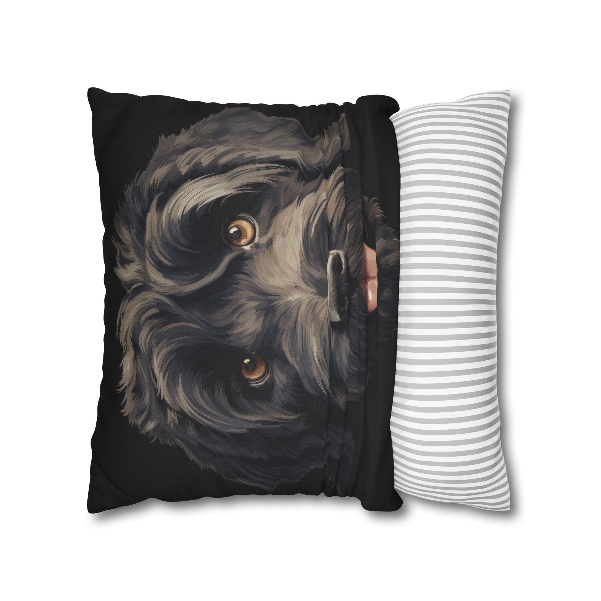 Bring the warmth and personality of a beloved pup into your living space with this spun polyester square pillowcase. The lifelike, double-sided portrait captures soft curls, warm eyes, and that playful tongue—so it feels like your dog is right there on the couch. The smooth spun-poly fabric keeps the print sharp and color-rich while resisting wrinkles, and the concealed beige zipper keeps the look clean without distracting from the artwork. Toss it on a sofa, layer it in a reading nook, or let it brighten a favorite armchair—this cover adds a cozy, personal touch to rooms where comfort and character matter most.