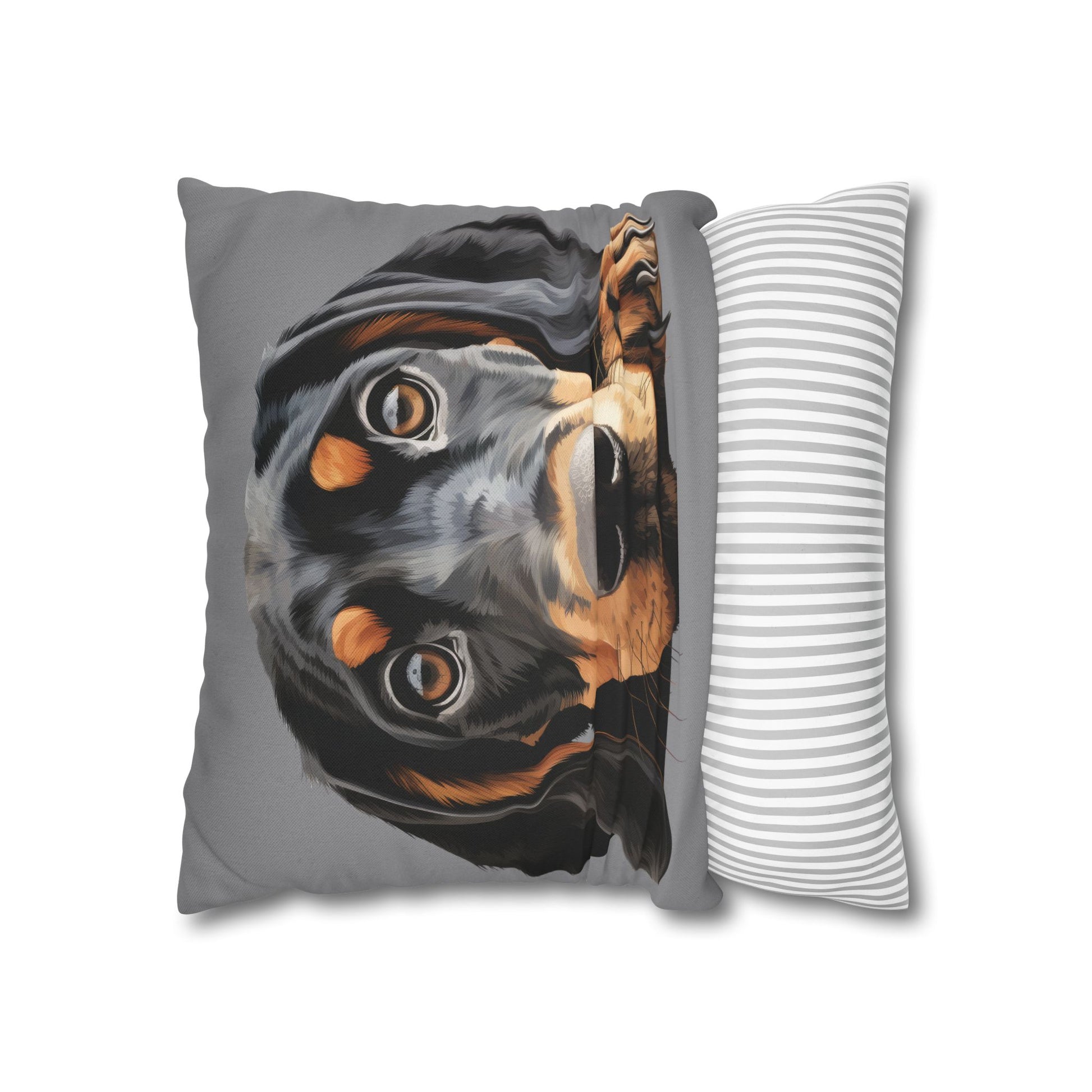 A soft, vibrant square pillowcase that brings a curious, soulful pup into your living space. The double-sided print captures the dog's big, expressive eyes and warm markings with painterly detail on a clean white background. Slip it onto an insert to add a friendly, lived-in touch to a couch, reading nook, or bedroom. The concealed beige zipper keeps the silhouette tidy while letting you remove the cover for spot care. It settles into cozy, casual rooms — especially where pets are loved and personalities shine through decor.