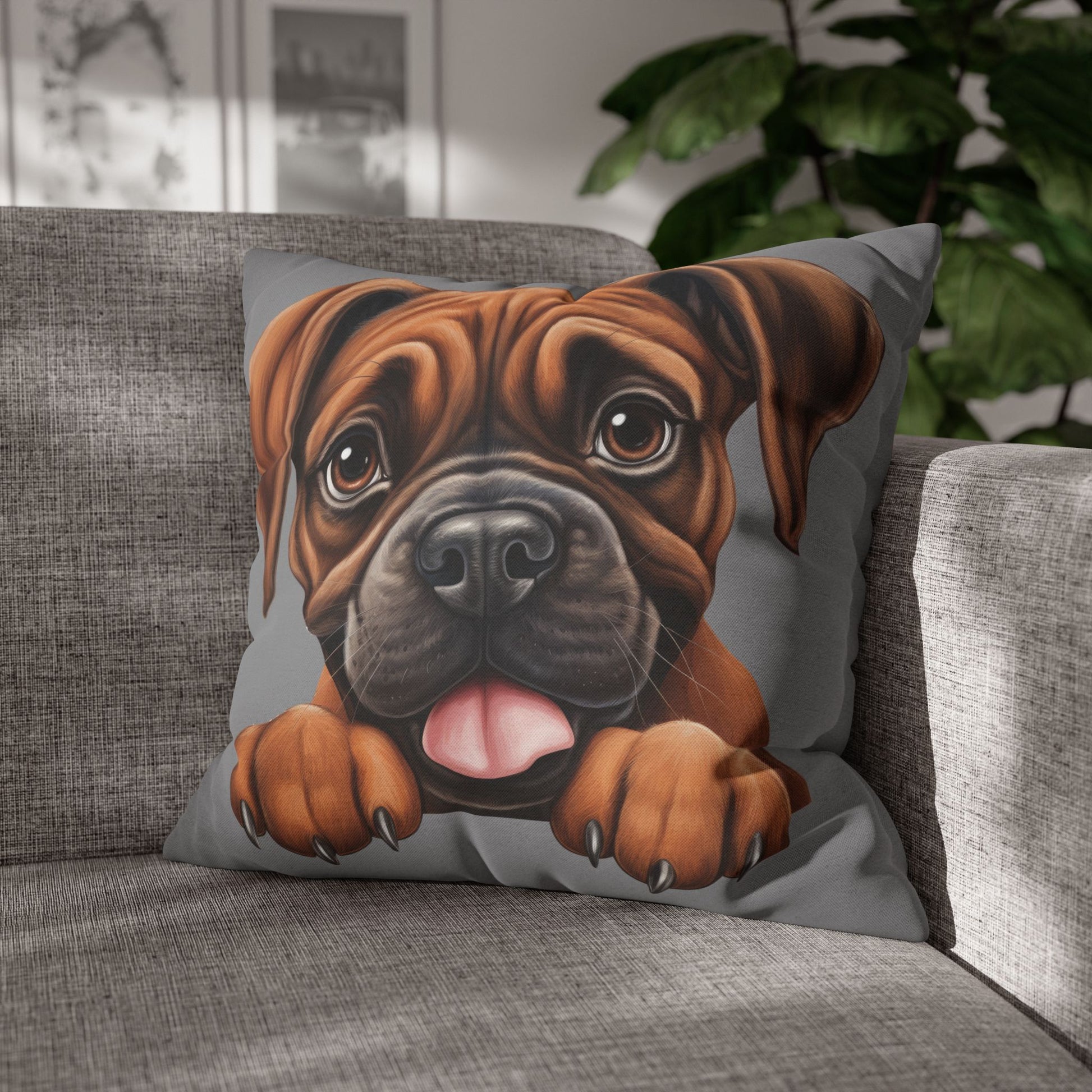 Brown Boxer Decorative Pillowcase — Cute Dog Throw Pillow Cover
