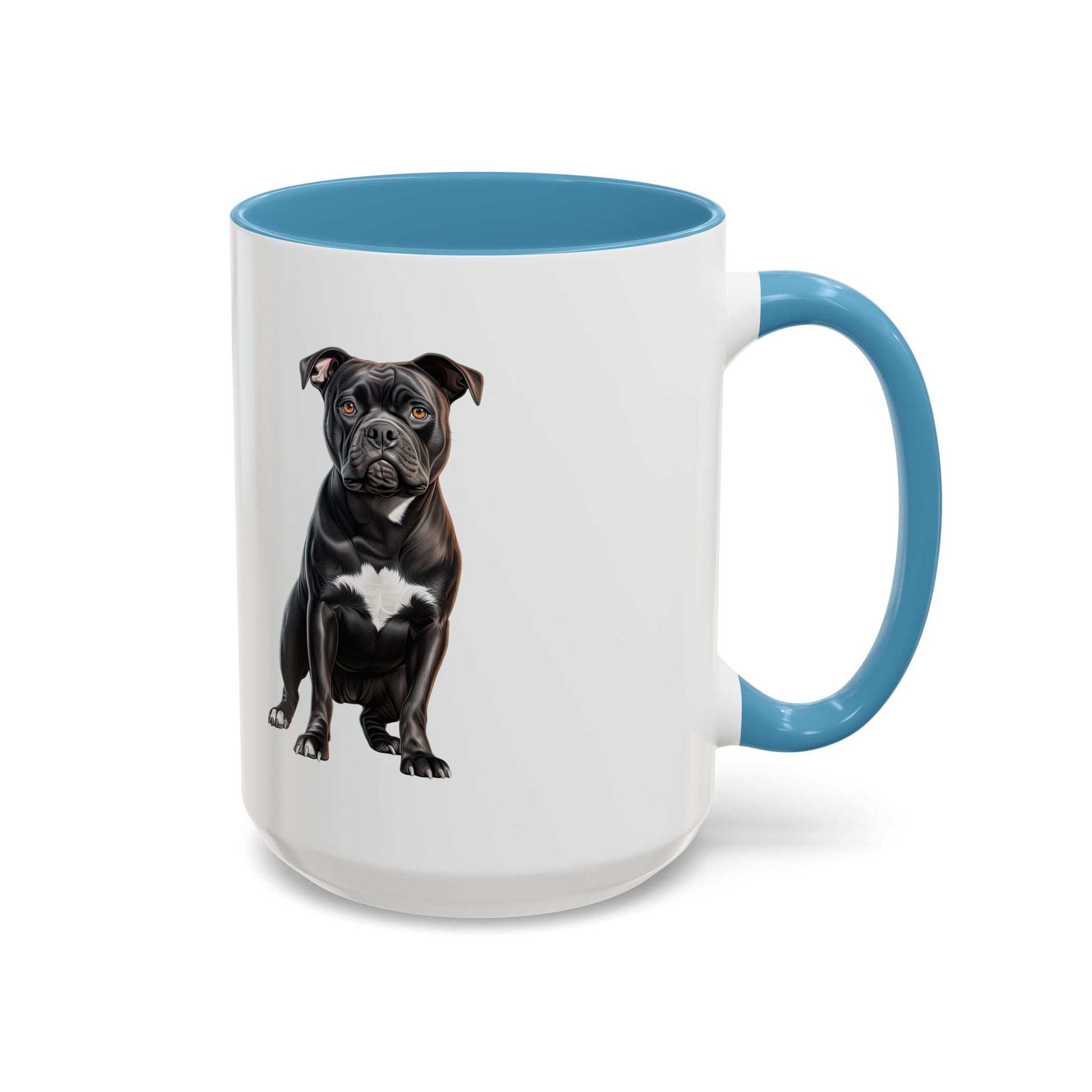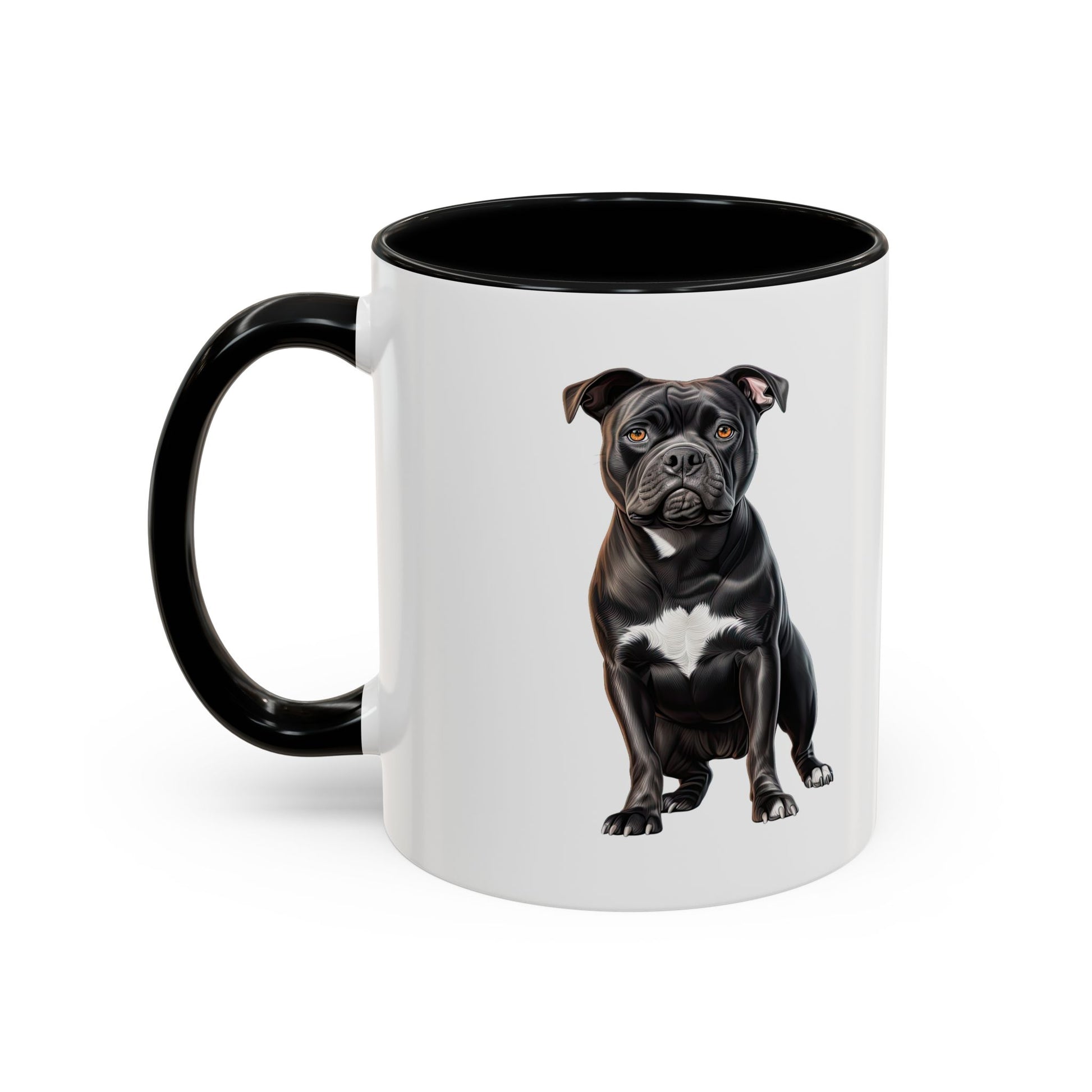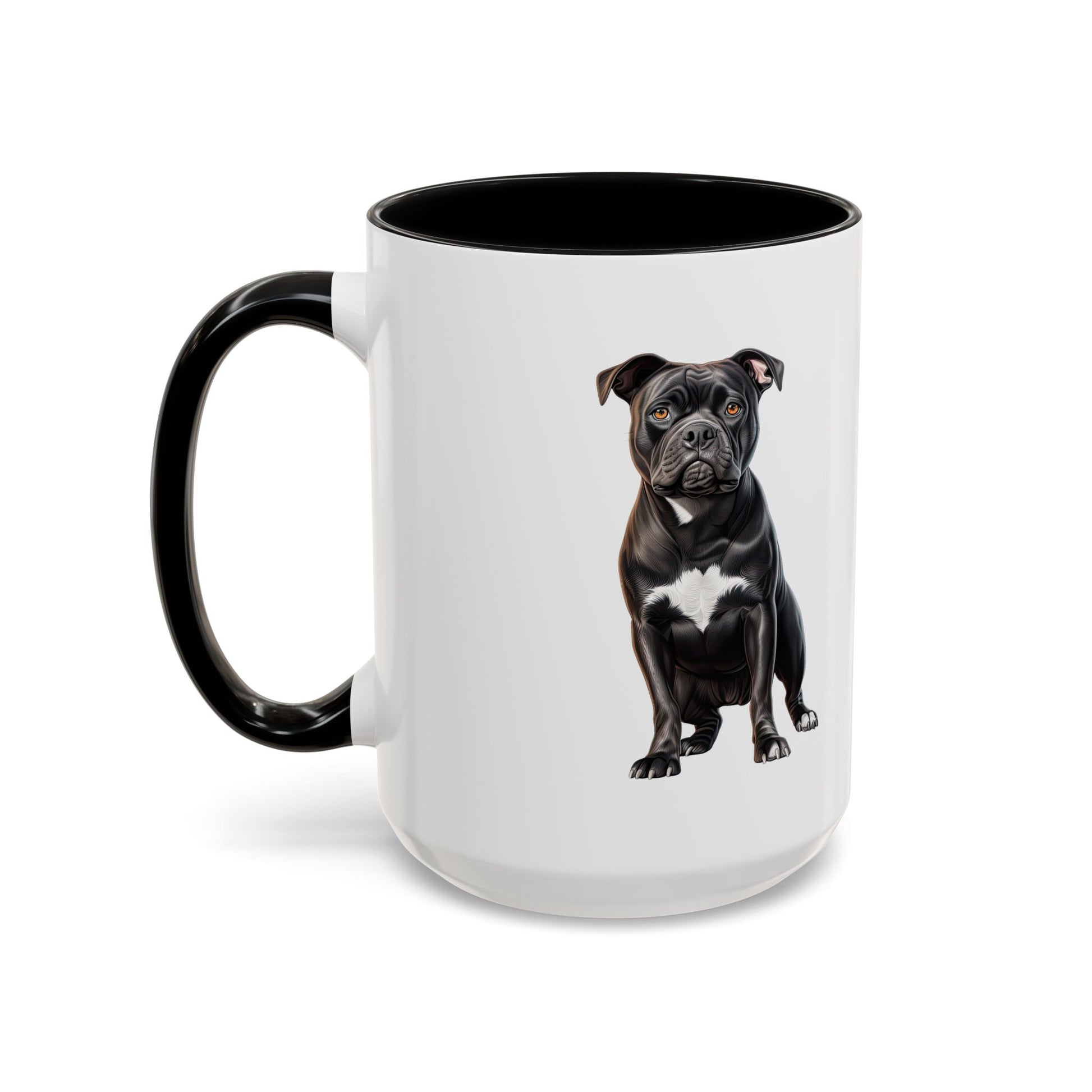 Staffordshire Bull Terrier Accent Coffee Mug — Cute Black Pitbull Dog Portrait (11/15 oz)