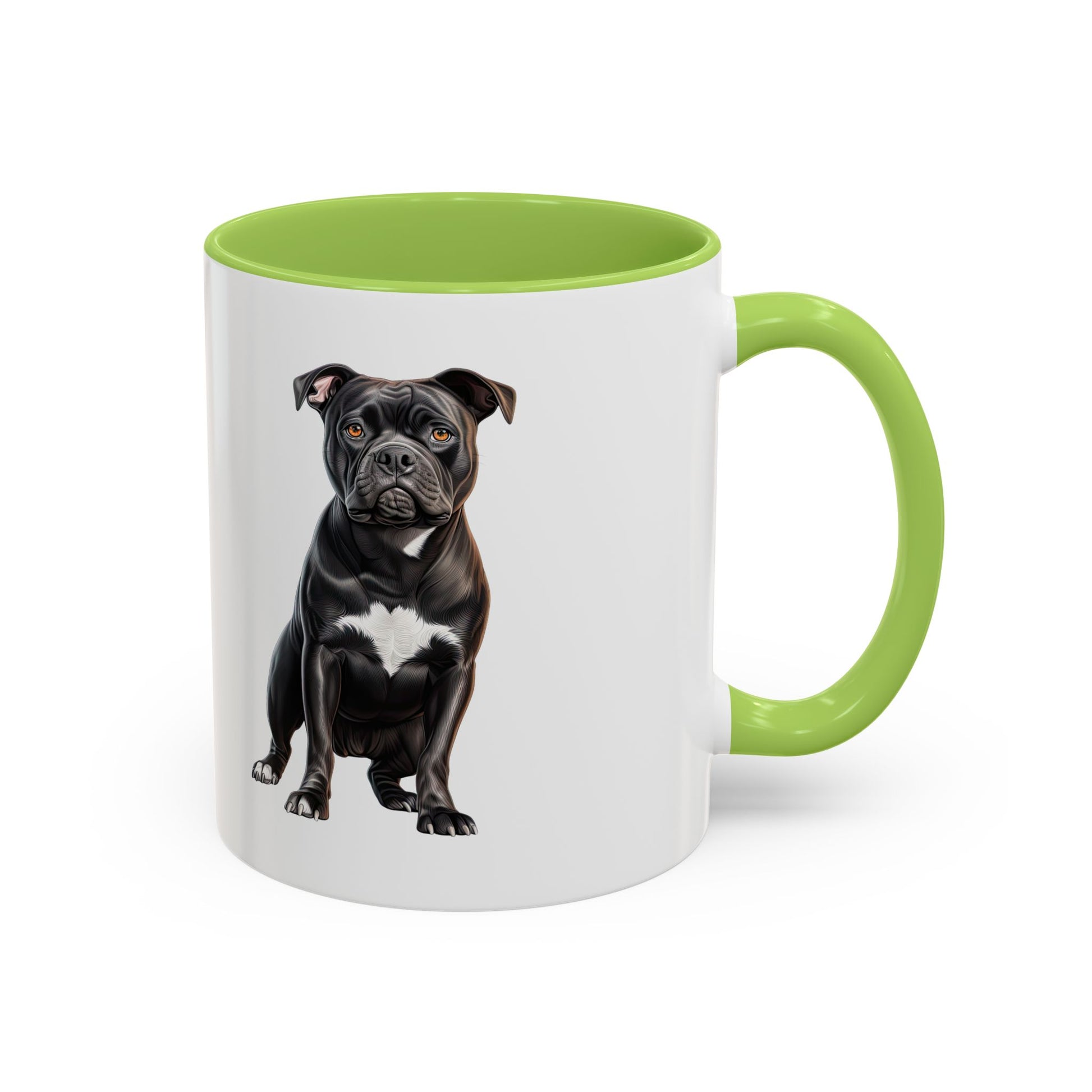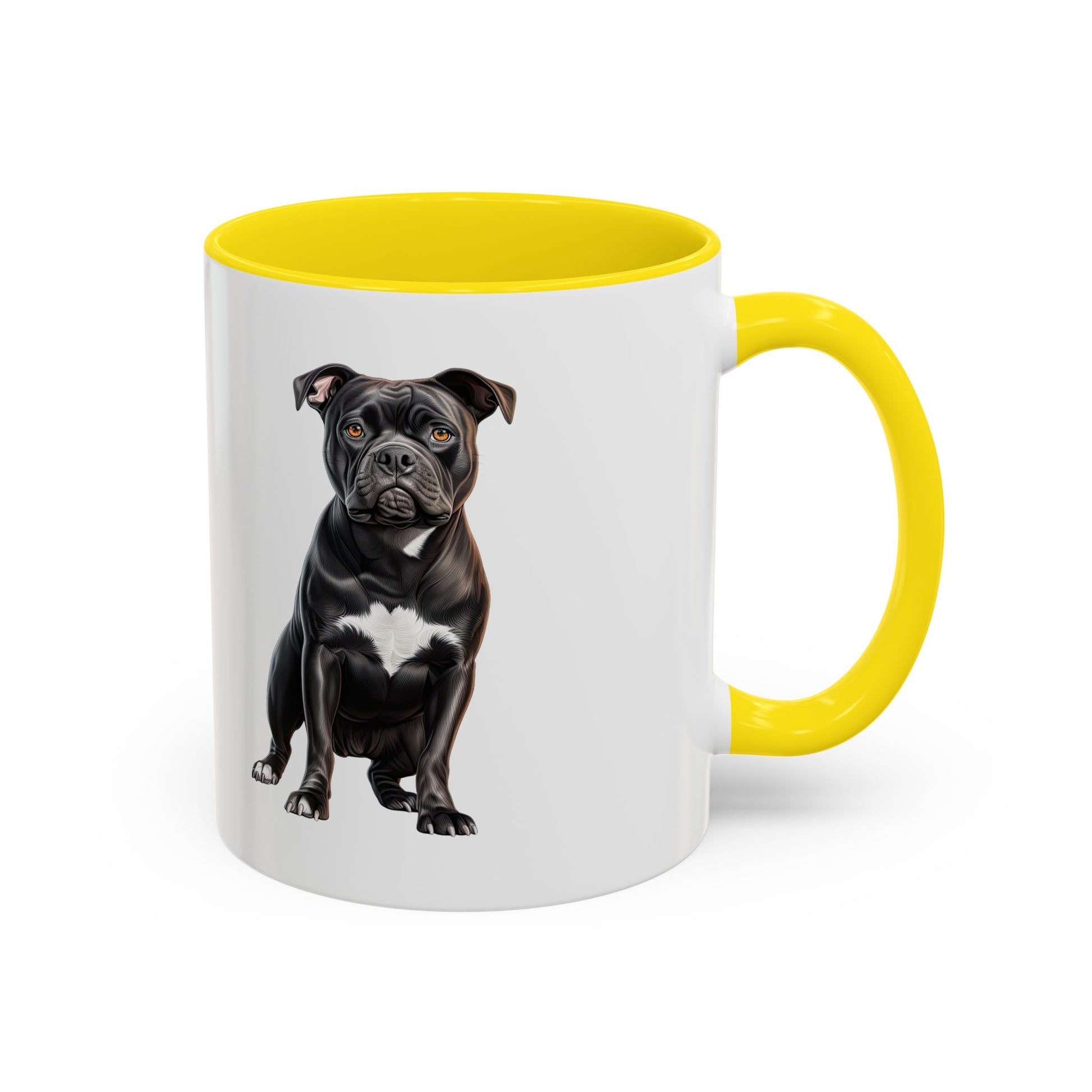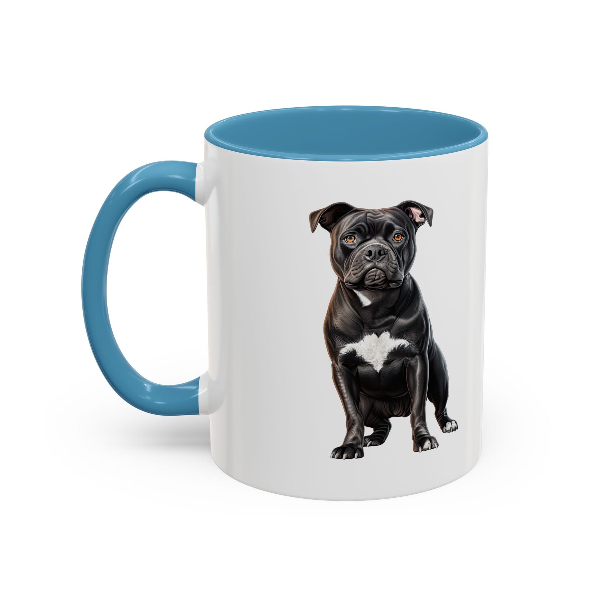 Staffordshire Bull Terrier Accent Coffee Mug — Cute Black Pitbull Dog Portrait (11/15 oz)